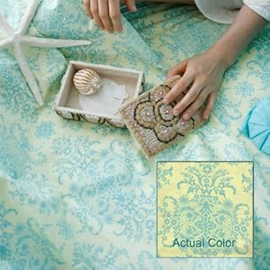 , 4 Piece Full Sheet Set: Flat Sheet, Fitted Sheet, 2 Standard Pillowcases, 100% organic cotton, 400 thread count, Amy Butler Dancing Garden- lime turquoise design on soft yellow ground.